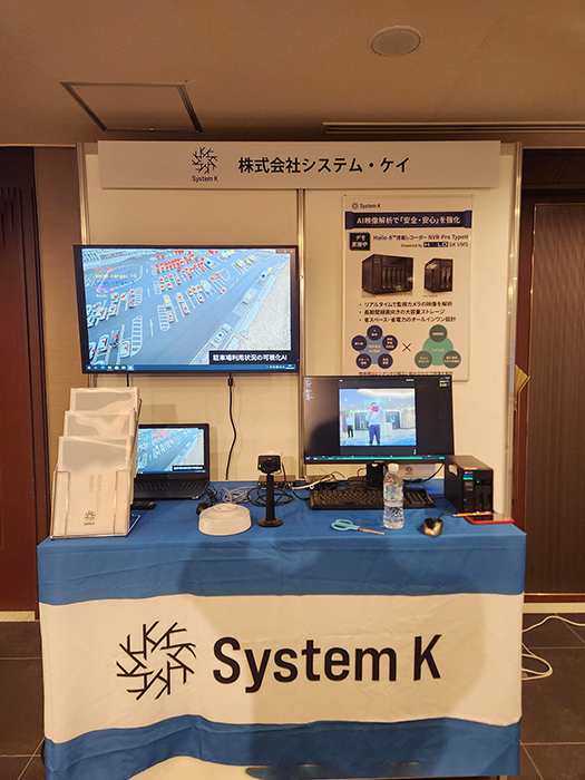 当社の出展ブースは、物流・製造業・港湾向けの導入事例動画や、新製品であるAI搭載の次世代型ネットワークビデオレコーダー「NVR-Pro TypeH」のデモンストレーションを行いました。