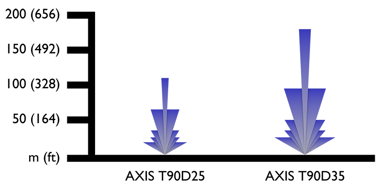AXIS T90D20 IR-LEDは最新のLEDテクノロジーを取り入れ、必要な場所をさらに明るく照らします。 この赤外線LED照明は、少ない光の消耗で遠距離まで光を当てることができ、前景領域にある対象物の過度な露出を避けることができます。 交換可能なレンズにより、お使いのネットワークカメラの画角に合わせて照射角度を最適化できます。 AXIS T90D20 IR-LED Illuminatorは発散レンズ (10º) が装着済みの他、ビーム角が35º、60º、80ºの発散レンズが付属しています。 また、120ºの発散レンズがオプションでご購入いただけます。