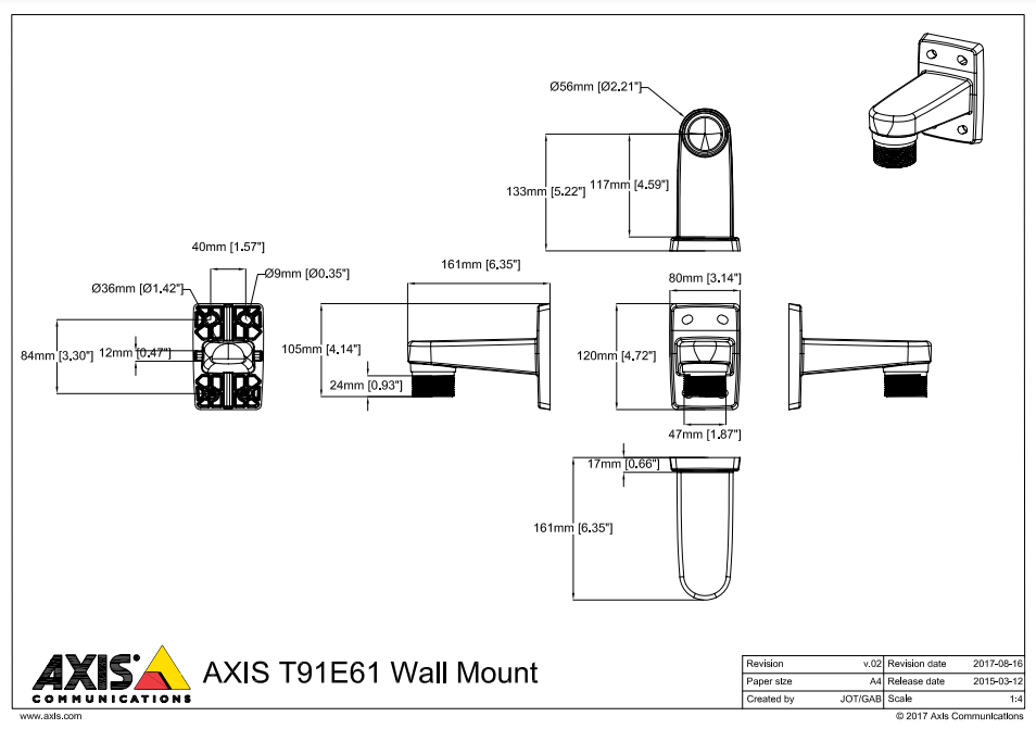 | モデル | AXIS T91E61 壁面取付ブラケット | |