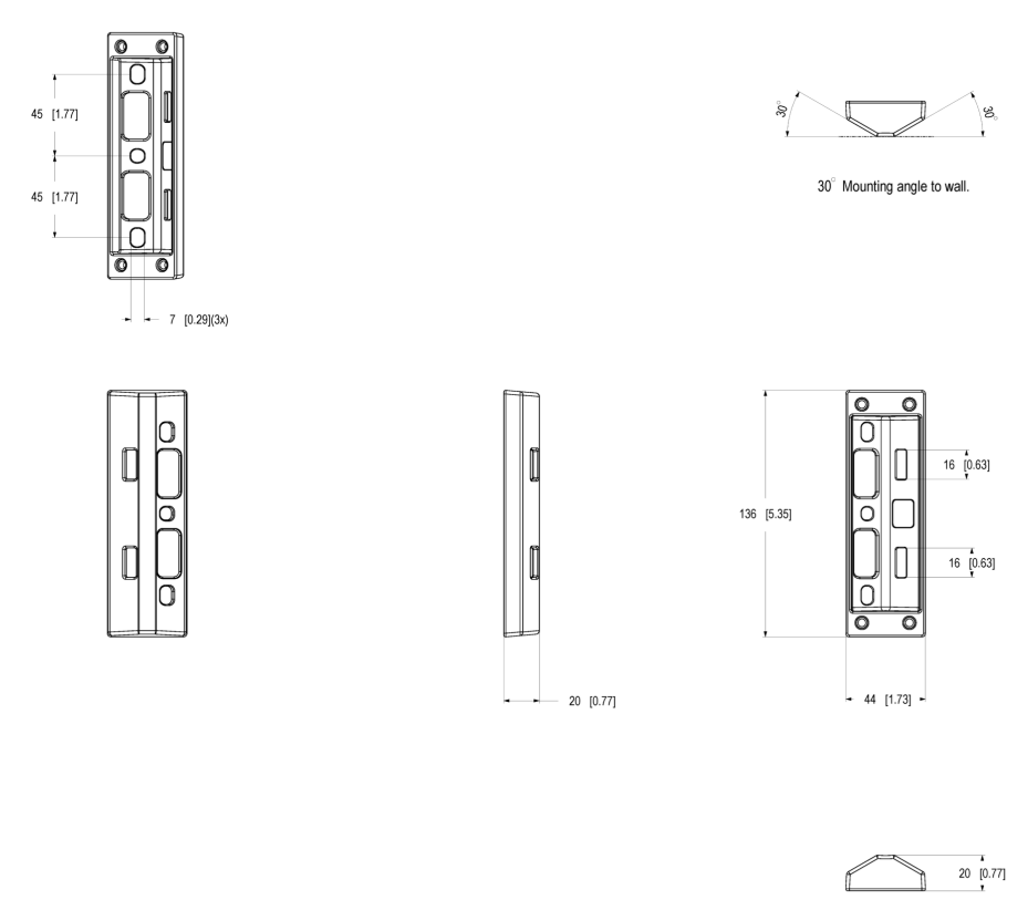 AXIS I8116-Eを壁に設置する際に、左右に30度傾けて設置できるウェッジマウントです。このウェッジマウントは、インターホンをポールに取り付ける際にも使用できます。
