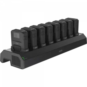 AXIS W701 Mk II Docking Station 8-bayは、Axis装着式カメラの扱いがより速く簡単になるようサポートします。迅速に充電でき、データのオフローディングも高速かつ安全です。