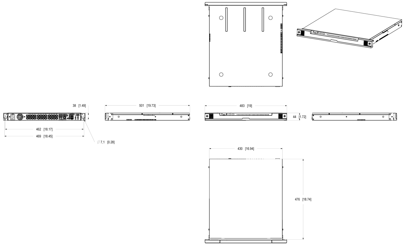 | 寸法 | 476 x 440 x 45 mm (18.7 x 17.3 x 1.8 in)、1Uシャーシ | |